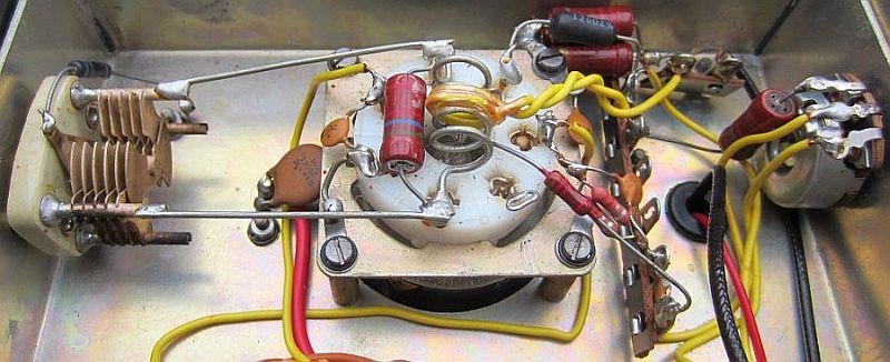 De stuurrooster kring aan de ingang is duidelijk in beeld en rechts is een potmeter voor het instellen van de negatieve roosterspanning.