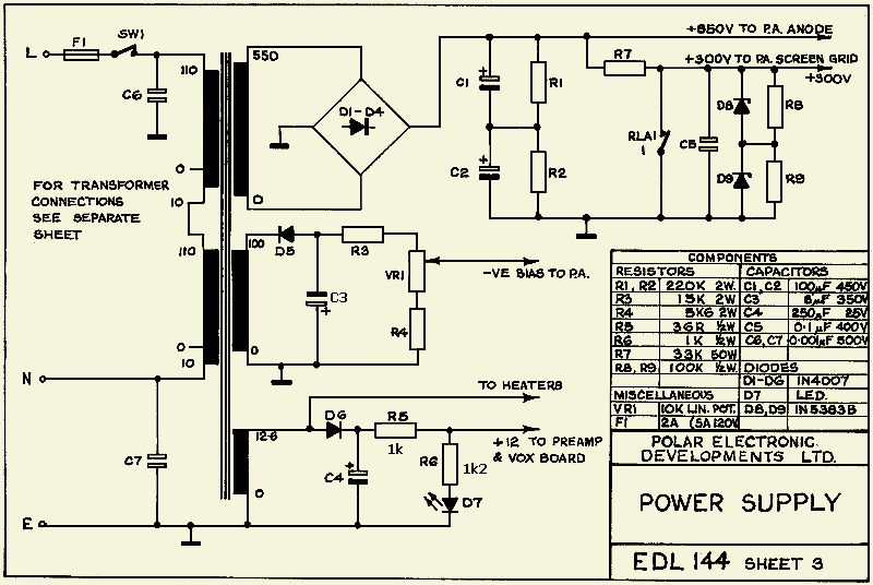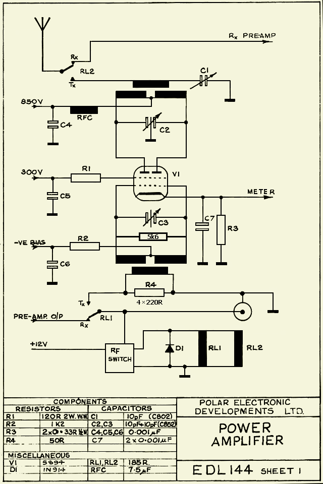 Deze AB2 lineaire versterker type EDL144 voor zenders van 10-20 W is bestemd voor 2m VHF en is geproduceerd door POLAR ELECTRONICS DEVELOPMENTS LTD. Het apparaat zal men zelden op internet tegenkomen en dit artikel is bedoeld als extra informatiebron. Het type is oorspronkelijk uitgerust met een dubbeltetrode 5394, maar met QQV06/40A is ook mogelijk. Toen het ding op eBay aangeboden werd, kon ik ook niet nalaten om een bod te doen. De bedoeling was om, door het veranderen van de kringen aan in en uitgang, er een 50 MHz PA van te maken.