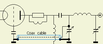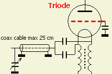 De anodesmoorspoel RFC2 is met 4.7 nF ontkoppeld naar aarde, maar een nog betere ontkoppeling kan via een stuk coaxkabel, RG52 voor 2000 V en RG213 voor 5000 V, naar het aardpunt van het rooster. De binnenader en de afscherming staan parallel aan 4.7 nF. Zo wordt als het ware de ontkoppelcondensator via de kabelcapaciteit verlegd naar het aardpunt van de buis. De afscherming van het stukje coaxkabel is aan beide uiteinden zo dicht mogelijk bij de smoorspoel en het rooster geaard.