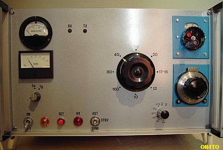 Zelfbouw van ON4TO, eerst met een "normale" variabele condensator en later met een vacuüm type.