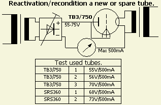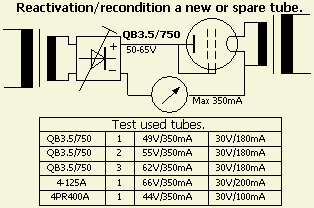 Het reactiveren gaat het gemakkelijkste door verwarming in de versterker. Stel de anodespanning buiten werking en warm de buis gedurende ongeveer een uur op met alleen de gloeispanning aan en ventilator uit. (Opgepast: bij veel keramische buizen moet de ventilator aan blijven). Herstel daarna HV en laat de buis ten minste een uur lang (met ingedrukte PTT schakelaar) niet meer dan de opgegeven russtroom trekken. Belast tijdens dat proces de uitgang met een kunstantenne (dummy load) om eventueel oscilleren te voorkomen. Na deze behandeling kan met ingeschakelde hoogspanning en ventilator voorzichtig sturing gegeven worden.