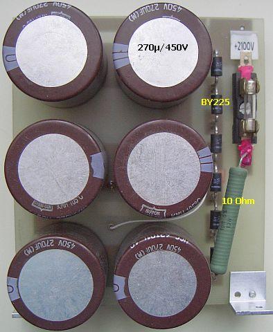 Op één print: gelijkrichten, verdubbelen, zekeren, meten van anode stroom en spanning.
