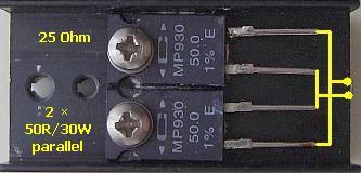 Voor de weerstand van 100 Ω/50 W kan men het beste 2 × 50 Ω/25 W reflectievrije chip weerstanden in serie schakelen en monteren op een koelprofieltje dat ten dele bestreken wordt door de afgevoerde luchtstroom van de ventilator.