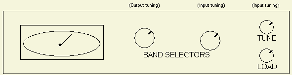 Het voordeel van het laatste systeem is dat altijd afgeregeld kan worden op SWR = 1 ongeacht het in of uitgangsvermogen. De maximale output is alleen aan te bevelen voor kortstondige normale QSO's. Bij urenlange uitzendingen is het verstandiger om het uitgangsvermogen te beperken tot 500 à 600 W. Voor de ombouw wordt het gat van de rode lamp bestemd voor een verplaatsing van de originele bandschakelaar. De vrijgekomen plek is bestemd voor de input bandschakelaar en ernaast komen de tuning en loading condensator voor het inputcircuit, het een en ander volgens de tekening.