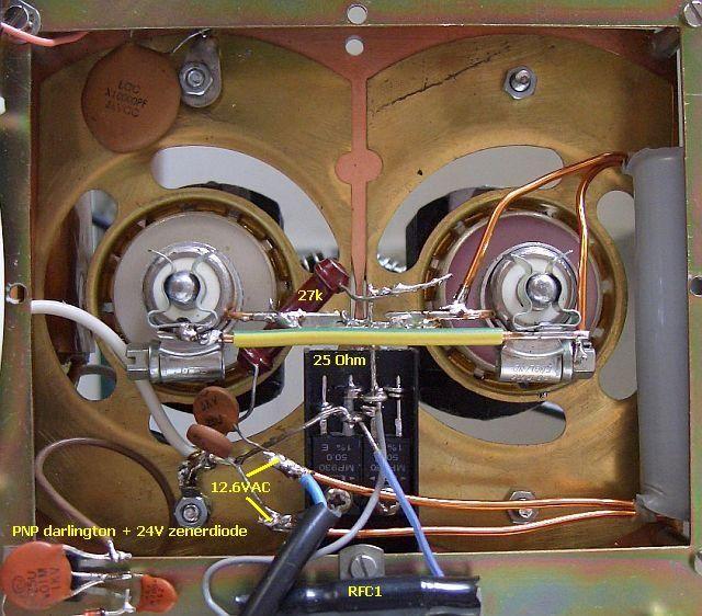 Bij het uitschakelen van de FUNCTION switch hebben de buizen nog de gelegenheid om af te koelen tot de extra schakelaar (voorlopig aan de achterkant fig») afgezet wordt. Het nestsnoer werd ook nog vervangen door een contactdoos voor een euro entré. |