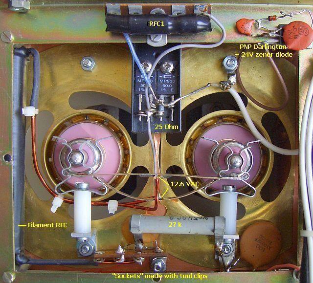 Als de buizen aan staan moet, direct gemeten op de buisvoet, de gloeispanning 12.8–13.1 VAC zijn! |