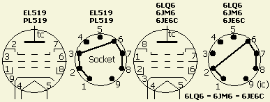 PL519 = EL519, maar gloeidraad van: PL519 is 40 VAC/300 mA en EL519 is 6.3 VAC/~2 A