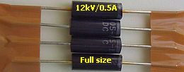 Van PE1KYC kreeg ik per post vier diodes («fig) om mee te experimenteren. Zodra hij zijn bestelling binnen had, maakte hij al snel een "brugcel" met vier diodes en testte dat met 5.3 kV; het ging prima!