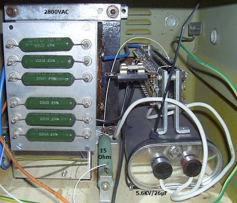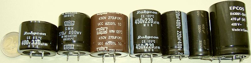 Met de opkomst van schakelende voedingen zijn elektrolytische condensatoren beschikbaar van o.a. 220 µF/400 V of zelfs 470 µF/450 V. Door hun kleinere afmetingen passen ze meestal op de plek van de verouderde of defecte exemplaren. Vervang alles en de komende dertig jaar zit u goed. Op http://www.ebay.de worden zij regelmatig per 10 stuks aangeboden en vaak voor een "direct kopen" prijs van soms maar 15 EURO.