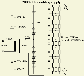 Tegenwoordig zitten in de meeste lineaire versterkers HV voedingen met een schakeling door spanningsverdubbeling.