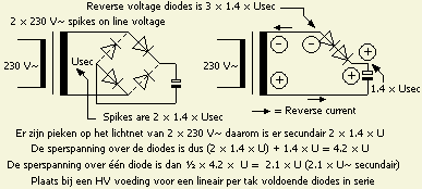 Met deze beschouwing als wetenschap zult u vaststellen dat in veel HV voedingen te weinig diodes zitten en eens zal dat fout gaan.