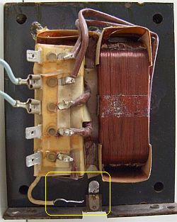 Er zijn allerlei manieren om te bepalen of een (onbekende) transformator geschikt is voor een bepaald vermogen. Men kan het gewicht bepalen of het blikpakket opmeten etc. Jammer genoeg (of niet?) werd in de loop der jaren de constructie van trafo's veranderd zodat oude meetmethodes nu niet meer gelden. Een redelijke manier die hier gebruikt wordt, is het opmeten van de gelijkstroomweerstand (Rsec) van de secundaire HV wikkeling. Stel dat de onbelaste secundaire spanning is: Usec = 2000 V en Rsec = 100 Ohm. Bij volle belasting mag de spanning (5%) inzakken naar 1900 V~, dan is de maximale stroom Imax = (2000 - 1900 V) ÷ 100 = 1 A. Het is dan een 1900 × 1 = 1.9 kW transformator.