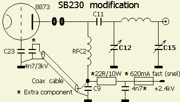 The extra 4.7 nF capacitor improves the decoupling of RFC2 on the lower bands: 40 & 80 m.