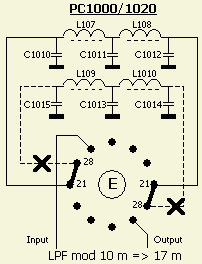 Het low pass filter voor 15 m wordt voor 17 m gebruikt, 10 m is ontkoppeld |