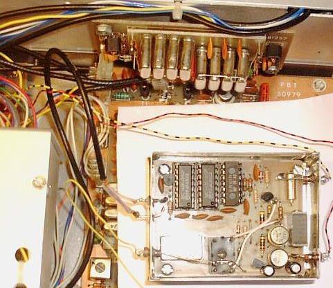 Op de 80980 print onderbreekt u de draad van connector 74 naar T1 en daarna verbindt u de collector van de tweede transistor met de connector. Bij mij werden alle extra componenten zwevend en zelfdragend rondom T1 gemonteerd.