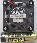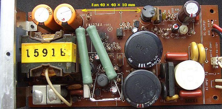 I had in my stock a small 40 × 40 × 10 mm fan that fits on the inner side of the cage just between the left orange electrolytic capacitor and the right ferrite choke. So even for the security it was installed.