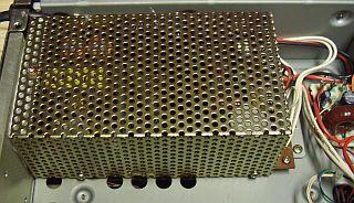 The components in question are located in the yellow-circled area. The PSU is mounted upside on the lower cabinet half of the transceiver. Two relatively small 33 Ω/2 W resistors (R17, 18) in parallel produce much heat that is "screened" by the reverse board. After a time the PCB is often slightly charred and bad solder joints occurs at the track side. The problem ultimately leads to faulty 1 µF en 220 µF electrolytic capacitors. Although my FT-736 had no problems and the soldering pads were intact, a number of safety modifications were made.