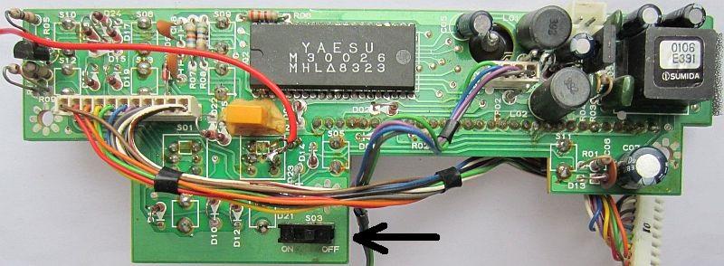 Frequentiebereik vergroten met schuifschakelaar S03. Q03 PNP transistor 2SA733AQ werd op de DISPLAY Unit door een BC557 vervangen .