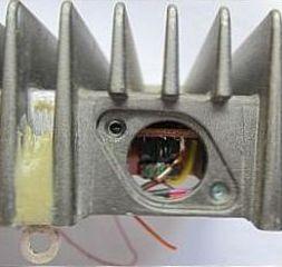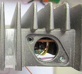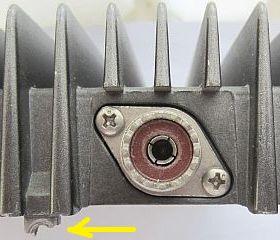 De lippen van de bovenkant (= koelblok) waren bij een aantal exemplaren afgebroken. Bij wijze van experiment heb ik dat, naar later bleek, met succes kunnen repareren. Daarvoor werden stevige messing soldeerlippen gebruikt. Om plaats te maken werd eerst de overgebleven nok weggeslepen en daarna de lip met twee componenten lijm erop bevestigd.