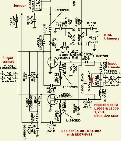 This is in fact the ONLY change I made when replacing the original 2SK2975 FETs to the new RD07MVS1 FETs.