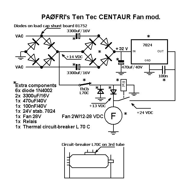 Ten Tec Centaur modificaties, (schema) stillere 28V ventilator (quiet fan) Foto.