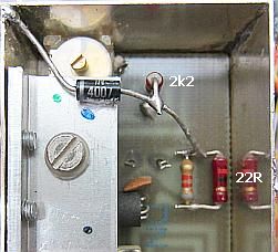 Omdat de potmeter R3 van de eindtrap onbetrouwbaar was, werd uit voorzorg ook R2 (minstens 45 jaar oud) van de stuurtrap verwijderd door het doorknippen van de drie pootjes. De laatsten werden gebruikt als soldeerpunt voor de te monteren componenten.