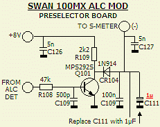 Persoonlijk prefereer ik een wat langzamere AGC en dat werd verkregen door op de PRESELECTOR BOARD een 220 µF condensator parallel aan C132 (100µF) te schakelen. Men kan natuurlijk ook de originele elco vervangen door een 330 µF type.