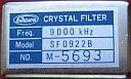 Full size SHOWA filters. Model SF0922B: 8 pole 9000 kHz In en output impedance: 500 Ω BW: 2.30 kHz/-6 dB, 4.14 kHz/-60 dB |