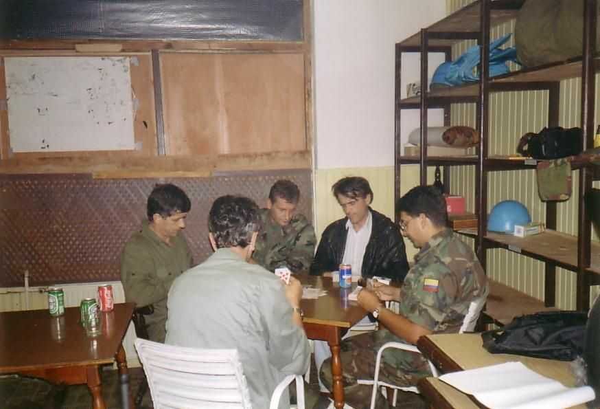 Carlos was een goede officier met veel gerechtservaring. Wij waren de eerste twee permanente waarnemers in Gorazde. Daarom gingen wij vaak gelijktijdig met kort verlof en reisden dan samen van en naar Sarajewo. In zijn land woedt al decennia lang een strijd tegen diverse groepen (o.a. FARC) en voor elke bevordering moet een officier ten minste één jaar actief daaraan deelnemen. Veel jaargenoten van zijn militaire academie waren inmiddels al in de strijd gesneuveld. Als pelotonscommandant lag hij 's nachts in het bos midden tussen zijn mannen en met touwen aan zijn sergeanten verbonden. Als er onraad was trokken zij eraan om hem op een stille manier te waarschuwen. Het is in dat land zo gevaarlijk dat veel militairen en hun gezin een dubbele identiteit hebben als zij zich privé verplaatsen. Als men bij een roadblock van de "vijand" merkt dat iemand een militair is van het regeringsleger, wordt hij direct aan de kant van de weg gefusilleerd. Men controleert onder andere de benen aan de onderkant van een burger broek. Aan de striemen is dan te zien of iemand laarzen aan heeft gehad! Verder moet een uniform dat versleten is, ingeleverd worden om te voorkomen dat het in verkeerde handen valt. Na zijn UNMO missie zou hij weer actief aan de strijd moeten deelnemen. Hij schijnt inmiddels luitenant kolonel te zijn. Met Google vond ik jaren later zijn email adres, maar dat bleek niet meer actief te zijn. Vermoedelijk is dat voor zijn veiligheid verwijderd.