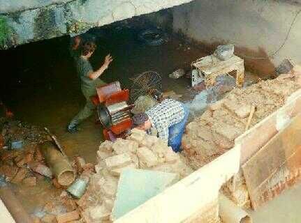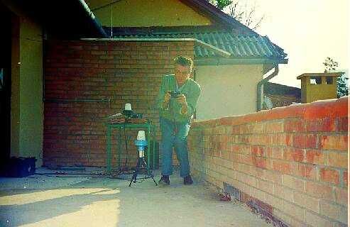 Maria ons manusje van alles kijkt verschrikt naar links als er granaten neer komen. Ons lichtaggregaat stond in de hoek van het balkon en het werd twee maal door mij gerepareerd. Als actieve zendamateur nam ik voor een missie altijd een behoorlijke set gereedschap mee en dat kwan toen goed van pas.