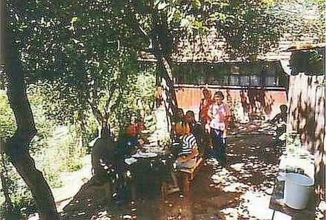 Aldaar de tolk (fig») meteen gevraagd om de betrouwbare mensen te laten opdraven om zo spoedig mogelijk de verantwoordelijke last kwijt te raken. Aldus geschiedde maar dat was nog niet alles. Alle geholpen gezinnen nodigden mij uit voor een feestje of avondmaaltijd. De gastvrijheid daar staat op hoger niveau dan wat wij in ons land gewend zijn. Ik zag de bui al hangen, uitgebreid eten met het beste stuk voor de gast terwijl ze het zelf niet breed hadden. Bovendien was er te weinig tijd voor en ben ik niet zo'n liefhebber van in het zonnetje zetten. De tolk moest maar rondbazuinen dat het meebrengen niets voorstelde en het gewoon een onbaatzuchtige daad geweest was. Hij heeft zeker een maand lang pogingen gedaan om mij over te halen alsnog een paar uitnodigingen te accepteren. Volgens de tolk kon je met goed fatsoen niet alles weigeren. Op zijn aandringen werden er tegen het einde van mijn missie twee invitaties aanvaard. Je voelt je een beetje opgelaten, zittend aan het hoofd van de tafel met het beste stuk vlees op een schotel. In dit geval de kop van een schaap of geit en iedereen kijkt toe als je eraan begint. Thuis wordt met mate vlees gegeten en ik ben eigenlijk een kleine eter. Met onzichtbare tegenzin aan de kop begonnen. Toen dat gelukkig weggewerkt was, kreeg je daarna een nog groter deel van het geslachte en geroosterde beest aangeboden. Was dat even afzien!