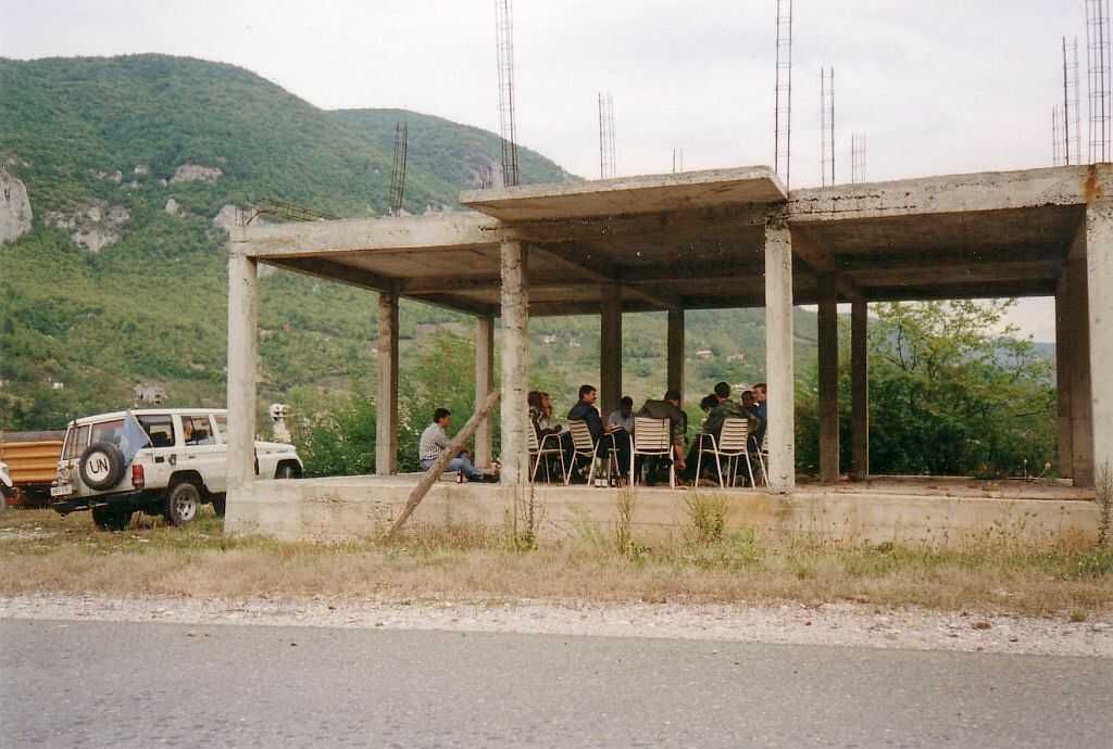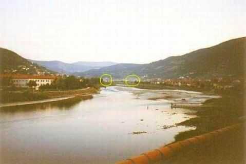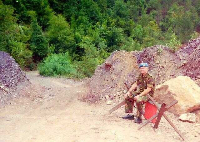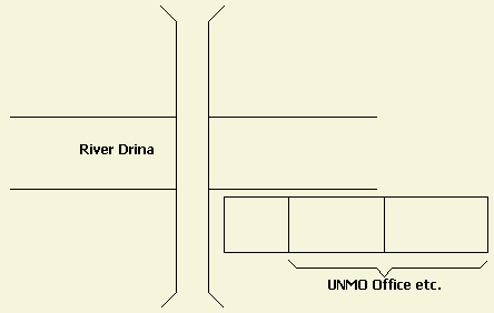Op de foto rechtsboven ziet men nog vaag op de achtergrond een brug. Er is daar een weg parallel aan de rivier en gelegen dicht tegen de bergwand. Tijdens een patrouille in een witte jeep, getooid met een goed zichtbare wapperende blauwe VN vlag, werd mijn voertuig door een tank op de bergen links beschoten. Door flink gas te geven vlogen de granaten achter het voertuig tegen de bergwand aan. Een fietser die een paar meter achter de jeep reed, werd ernstig gewond door granaatscherven in zijn hoofd.