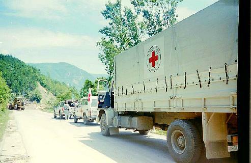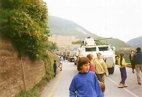 Als wij terug reden van het Servische gebied, was ons voertuig volgepakt met dozen levensmiddelen en andere spullen voor Servische en Moslim familieleden en vrienden in de enclave.
