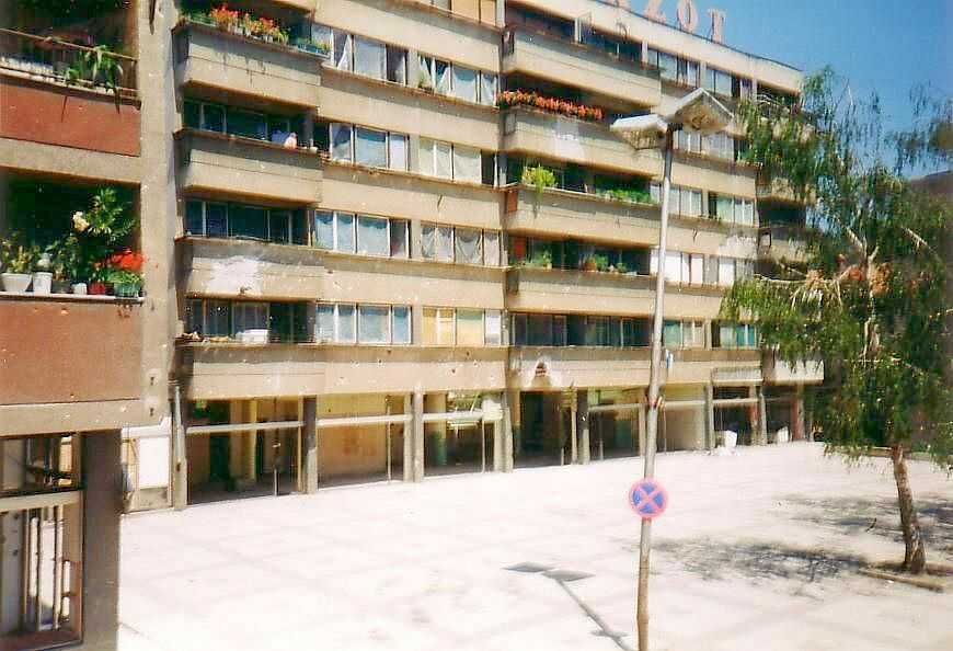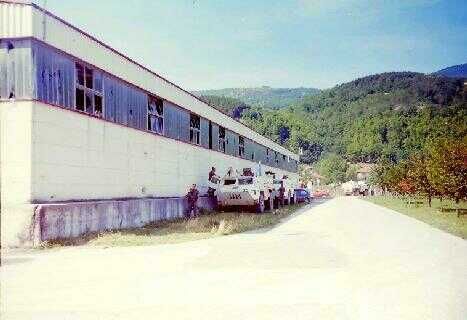 Onze eerste woonwerkplek was precies in het centrum van Gorazde (fig»). Als de stad met granaatvuur bestookt werd, probeerde men ons verblijf uit de vuurlijn te houden. Regelmatig vielen de granaten te dichtbij naar onze zin. Pogingen om een veiliger plek voor de post te vinden werd door de locale militaire leiding gedraineerd. Mijn indruk was dat met onze aanwezigheid in het centrum het gebied vrij van beschietingen zou blijven.