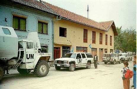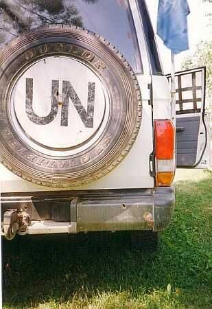 De VN voertuigen op de foto's waren van een onderhoudsploeg uit Sarajevo. Het duurde veel te lang voordat zij konden en mochten komen. Onze eigen auto's waren tweedehands zonder enige reserve onderdelen zoals lampen, banden krik etc. Kleine reparaties lieten wij tegen betaling van een paar sigaretten uitvoeren door een locale garage als zij tenminste de beschikking hadden over een lichtaggregaat. De brandstof daarvoor kwam van onze eigen voorraad. De onderhoudsploeg was zo "goed" dat bij aankomst eerst hun eigen vrachtwagen gerepareerd moest worden.